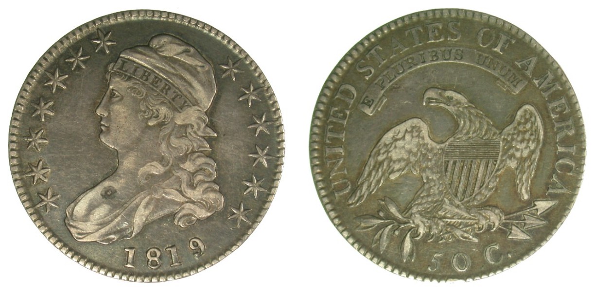 50c Capped Bust Type, Lettered Edge.Mintage: 2,208,000 (in part)
