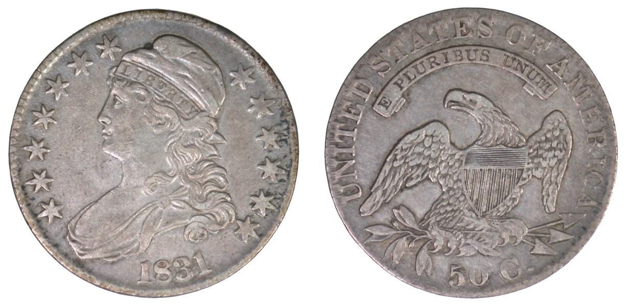 50c Capped Bust Type, Lettered Edge.