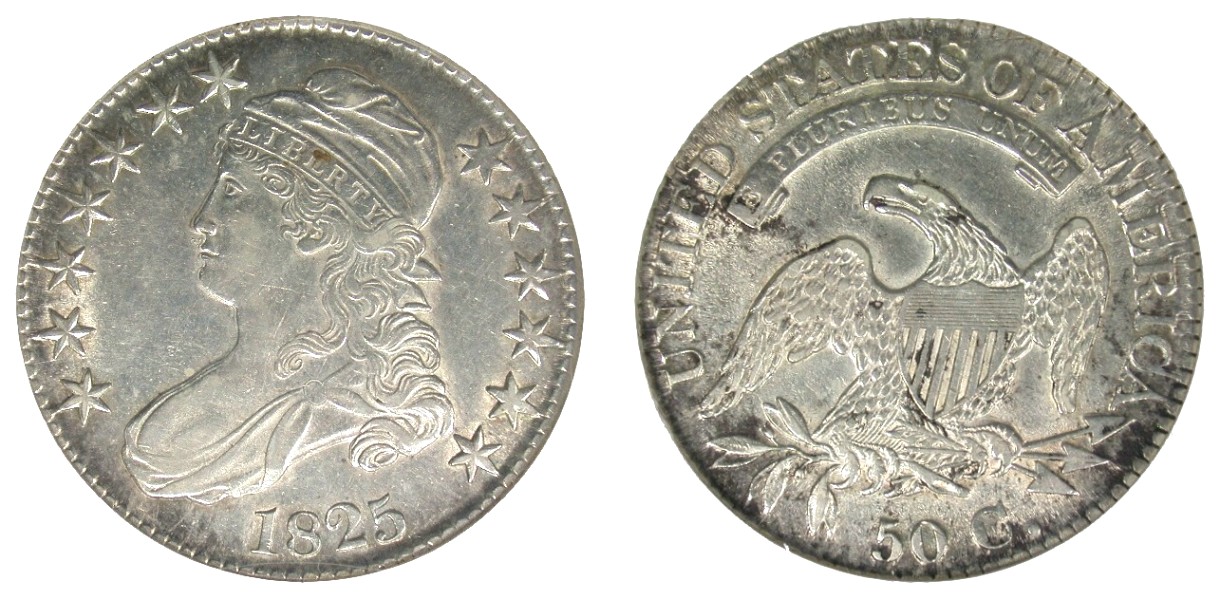 50c Capped Bust Type, Lettered Edge.