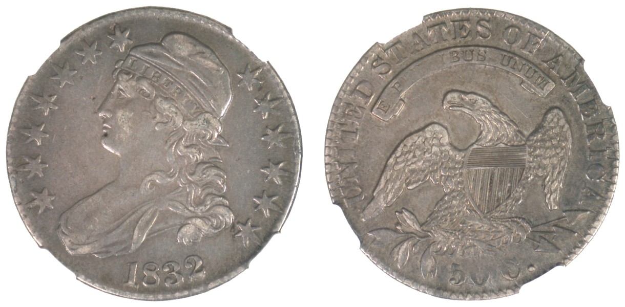 50c Capped Bust Type, Lettered Edge.