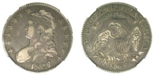 50c Capped Bust Type, Lettered Edge.Mintage: 1,368,600 (in part)