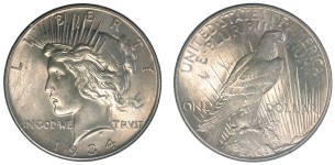 Peace Dollar.Mintage: 30,800,000